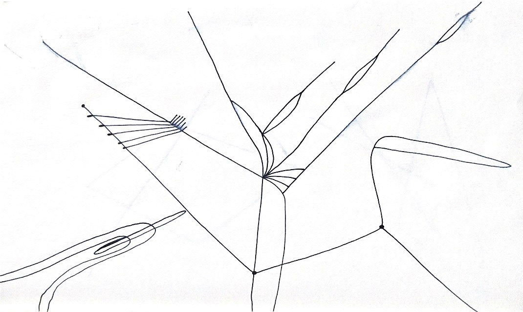 Variations around the relation of space and thoughts. pen on paper 3 pages in variable sizes