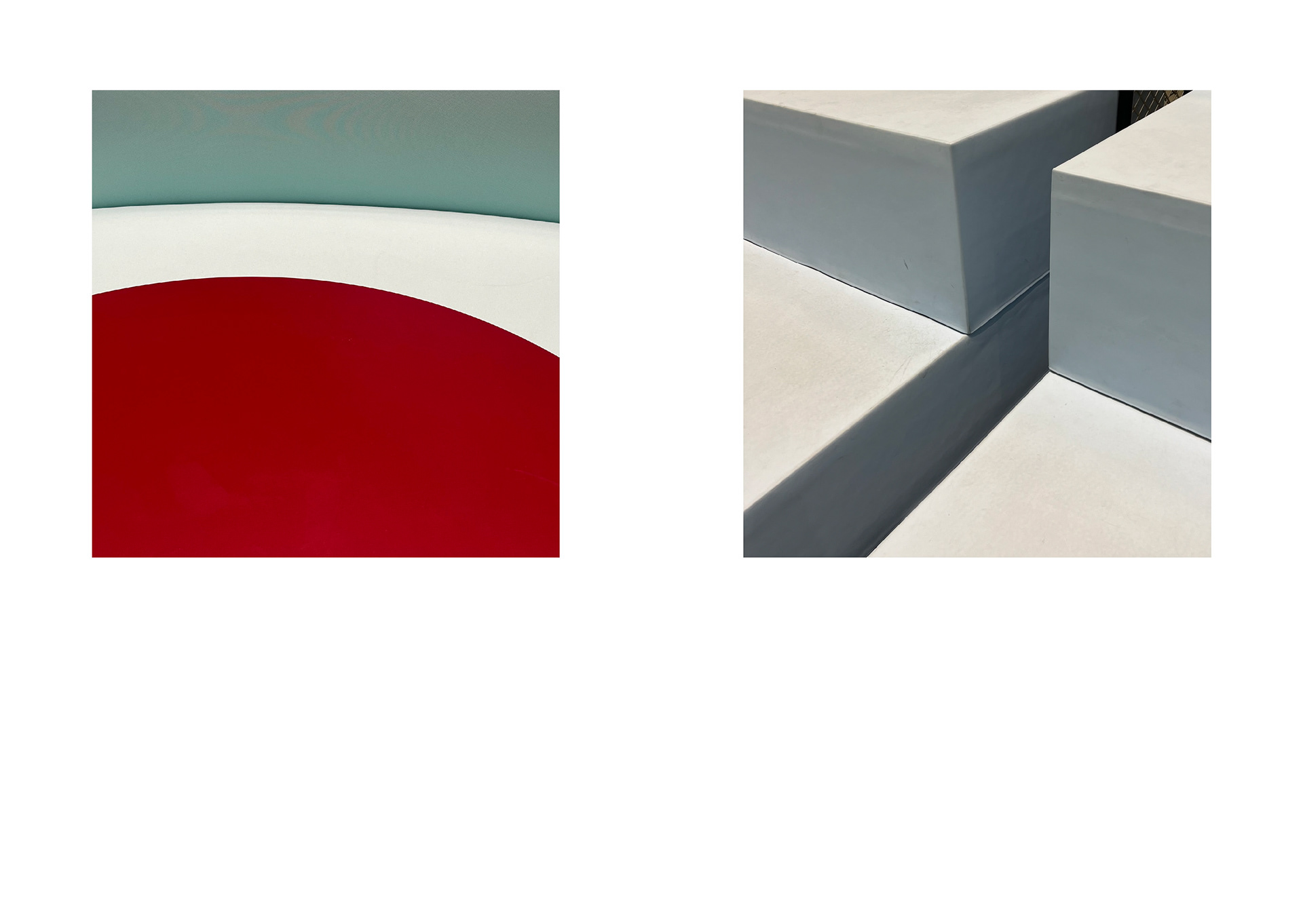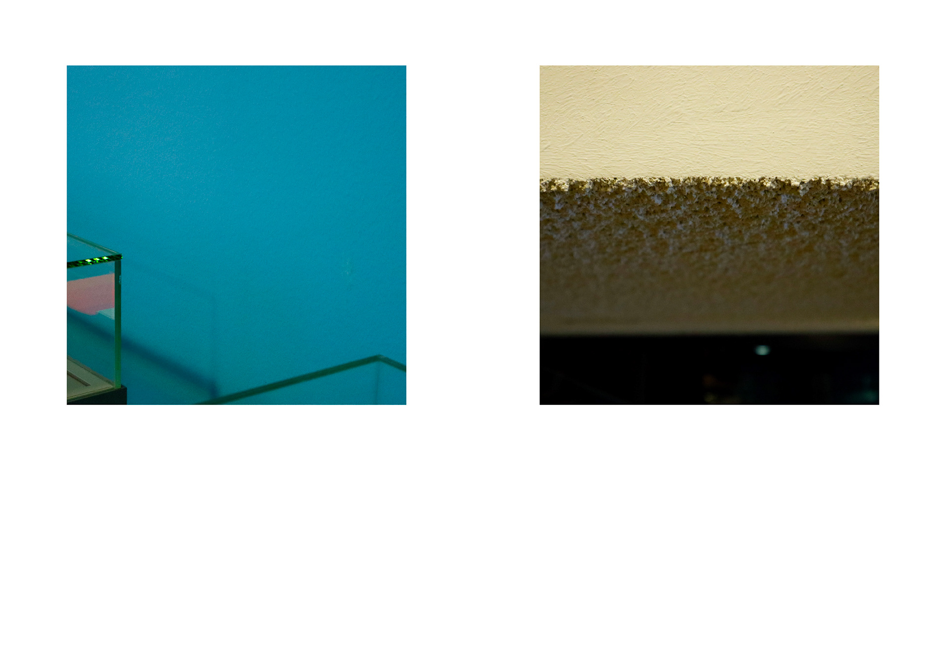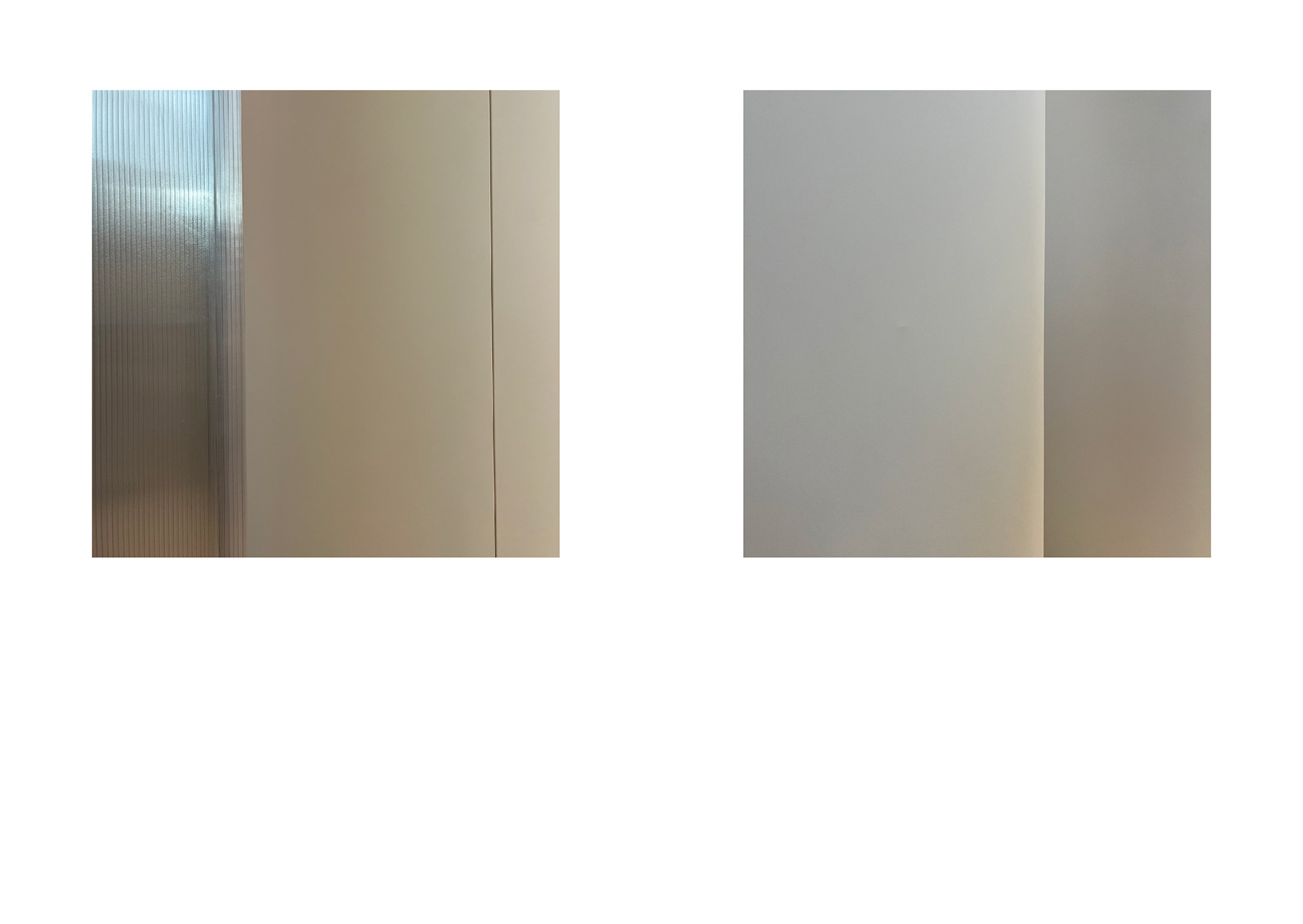 The project ‘Used | Unused’ focuses on the unintended changes of materials resulting from repetitive human interactions. Through spatial observations at the Akademie der Künste (AdK) and the Axel Springer Campus, I documented material- and color-based compositions using photography. These visual records serve as a key source for my work. At the AdK Imeticulously cataloged material interactions, emphasizing their inherent characteristics and details. The resulting frames reveal traces of human touch — alterations that occur unintentionally. By capturing these nuances, I invite viewers toperceive the building from a different angle, appreciating the subtle shifts in material states. My approach slightly shifted at the Axel Springer Campus. Here, I intentionally excluded contextual information from myclose-up images. The goal was to strip away functionality and focus solely on materiality. Isolating objects by reducing them into mere colors and shapes we can observe their appearances more detailed. This process helped me to refine my aesthetic preferences, emphasizing texture, color, and form, which I wished to represent in my work later on.