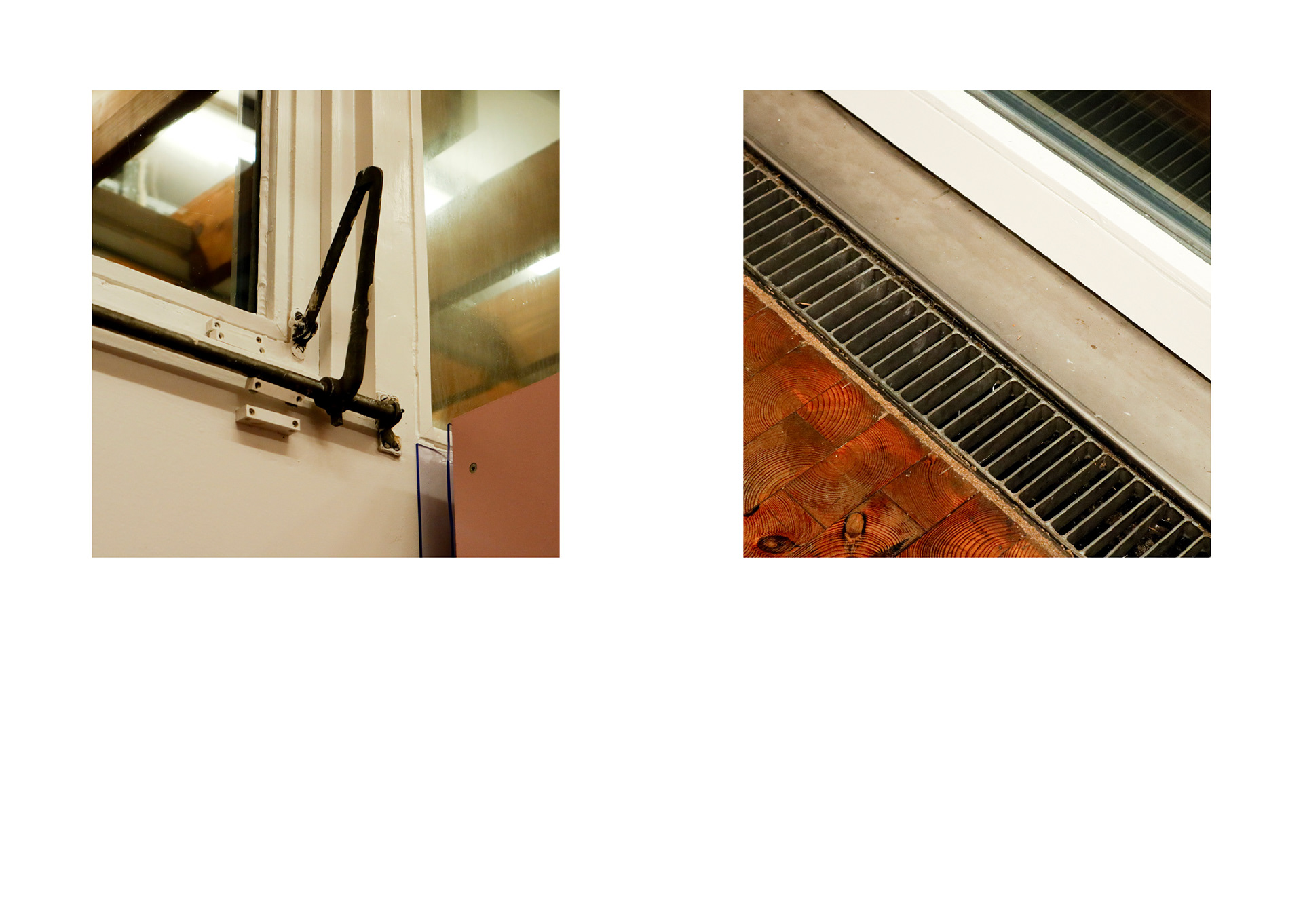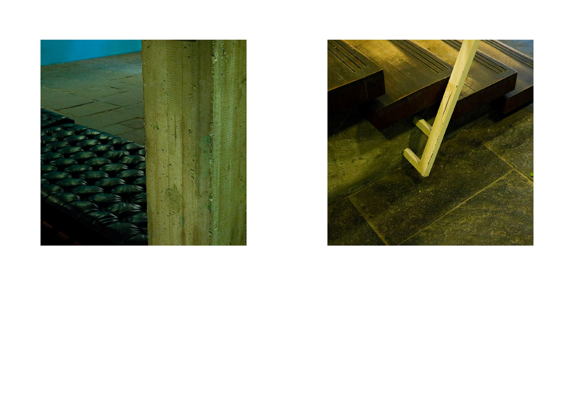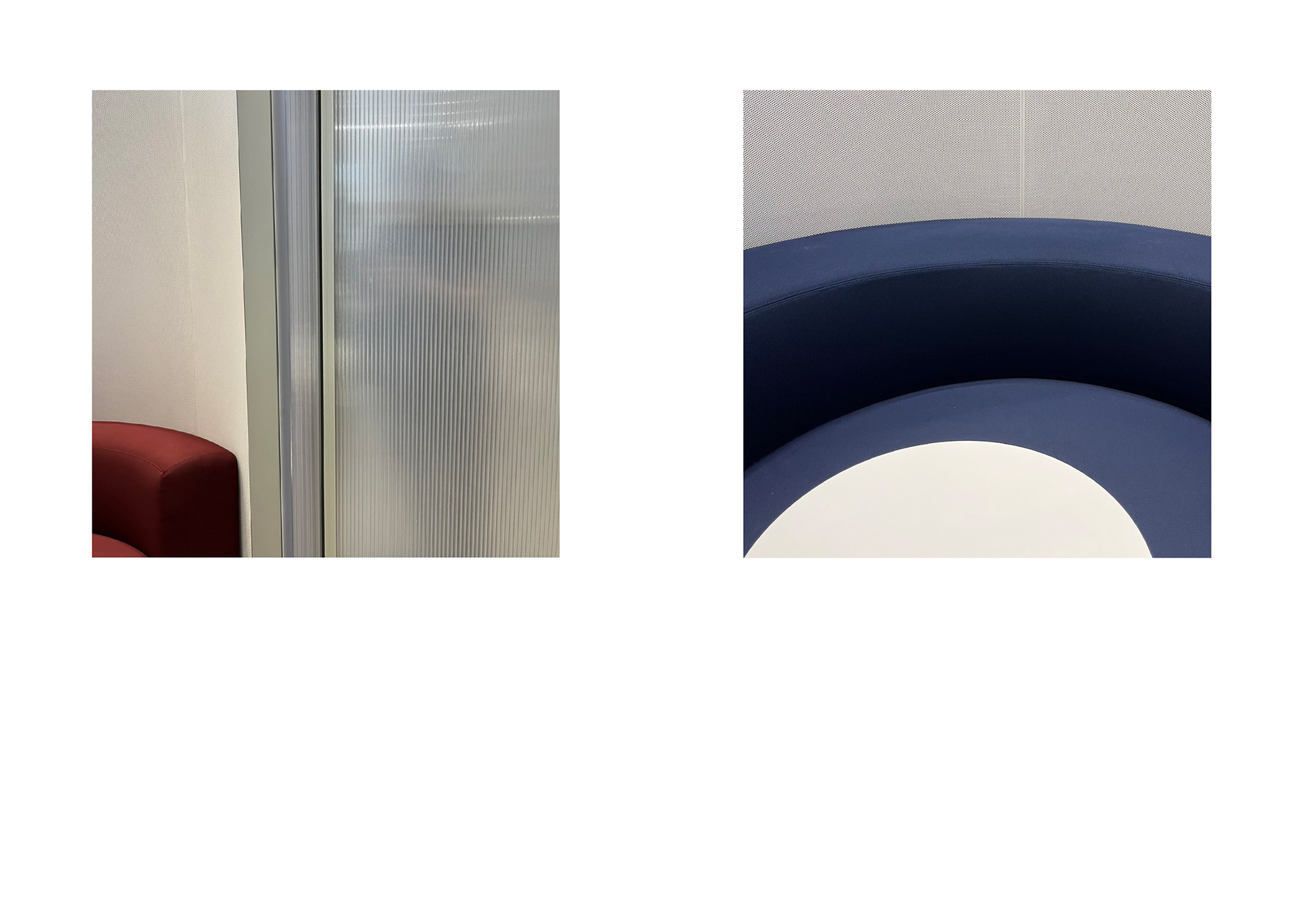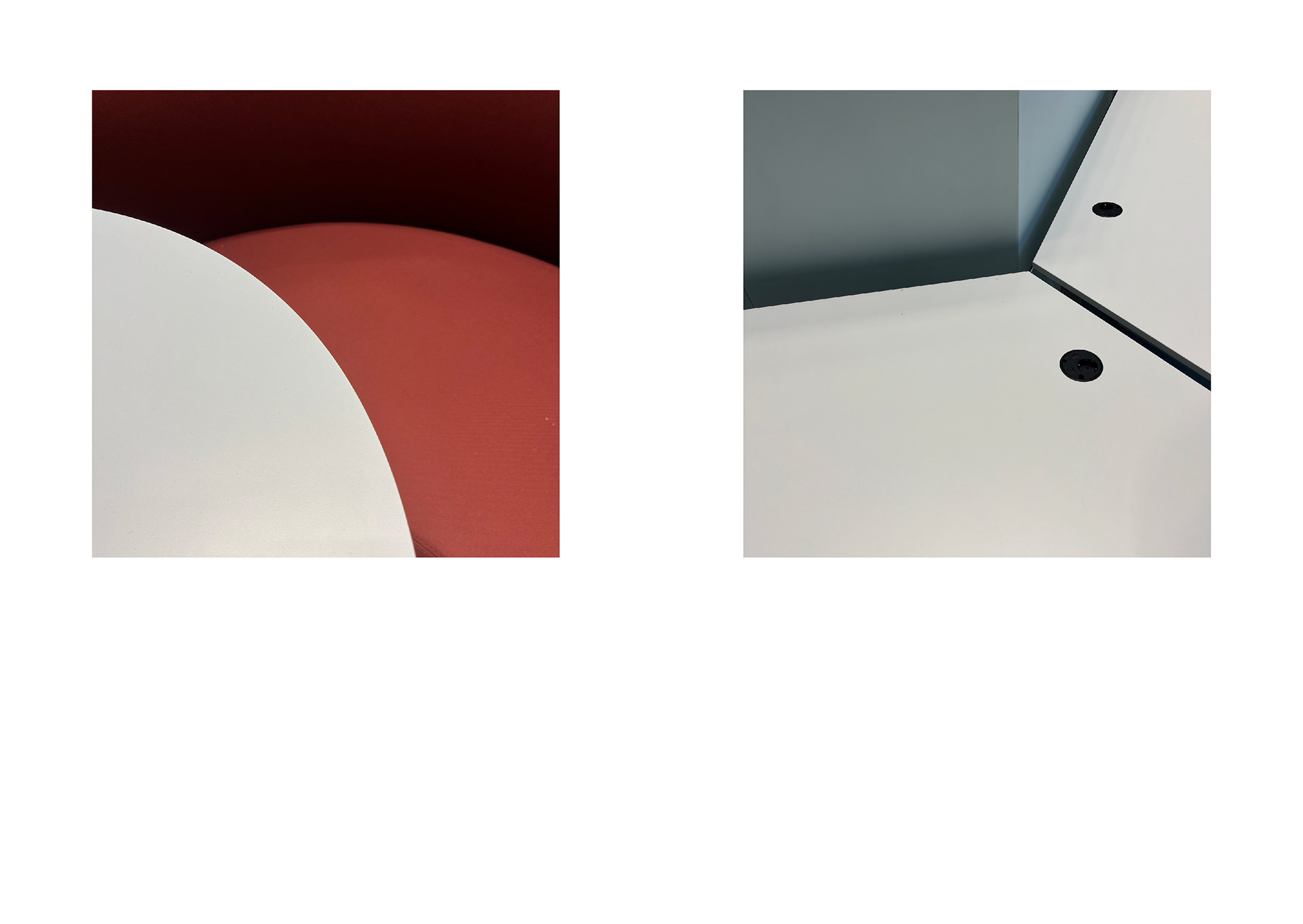 The project ‘Used | Unused’ focuses on the unintended changes of materials resulting from repetitive human interactions. Through spatial observations at the Akademie der Künste (AdK) and the Axel Springer Campus, I documented material- and color-based compositions using photography. These visual records serve as a key source for my work. At the AdK Imeticulously cataloged material interactions, emphasizing their inherent characteristics and details. The resulting frames reveal traces of human touch — alterations that occur unintentionally. By capturing these nuances, I invite viewers toperceive the building from a different angle, appreciating the subtle shifts in material states. My approach slightly shifted at the Axel Springer Campus. Here, I intentionally excluded contextual information from myclose-up images. The goal was to strip away functionality and focus solely on materiality. Isolating objects by reducing them into mere colors and shapes we can observe their appearances more detailed. This process helped me to refine my aesthetic preferences, emphasizing texture, color, and form, which I wished to represent in my work later on.